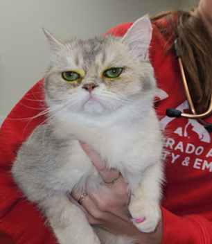 Randy, an 8-month-old Scottish Straight cat, was brought to Colorado Animal Specialty & Emergency (CASE) after suddenly squinting and pawing at his left eye. His symptoms appeared quickly and were not linked to any known trauma or prior eye issues, which raised concern for his owner.